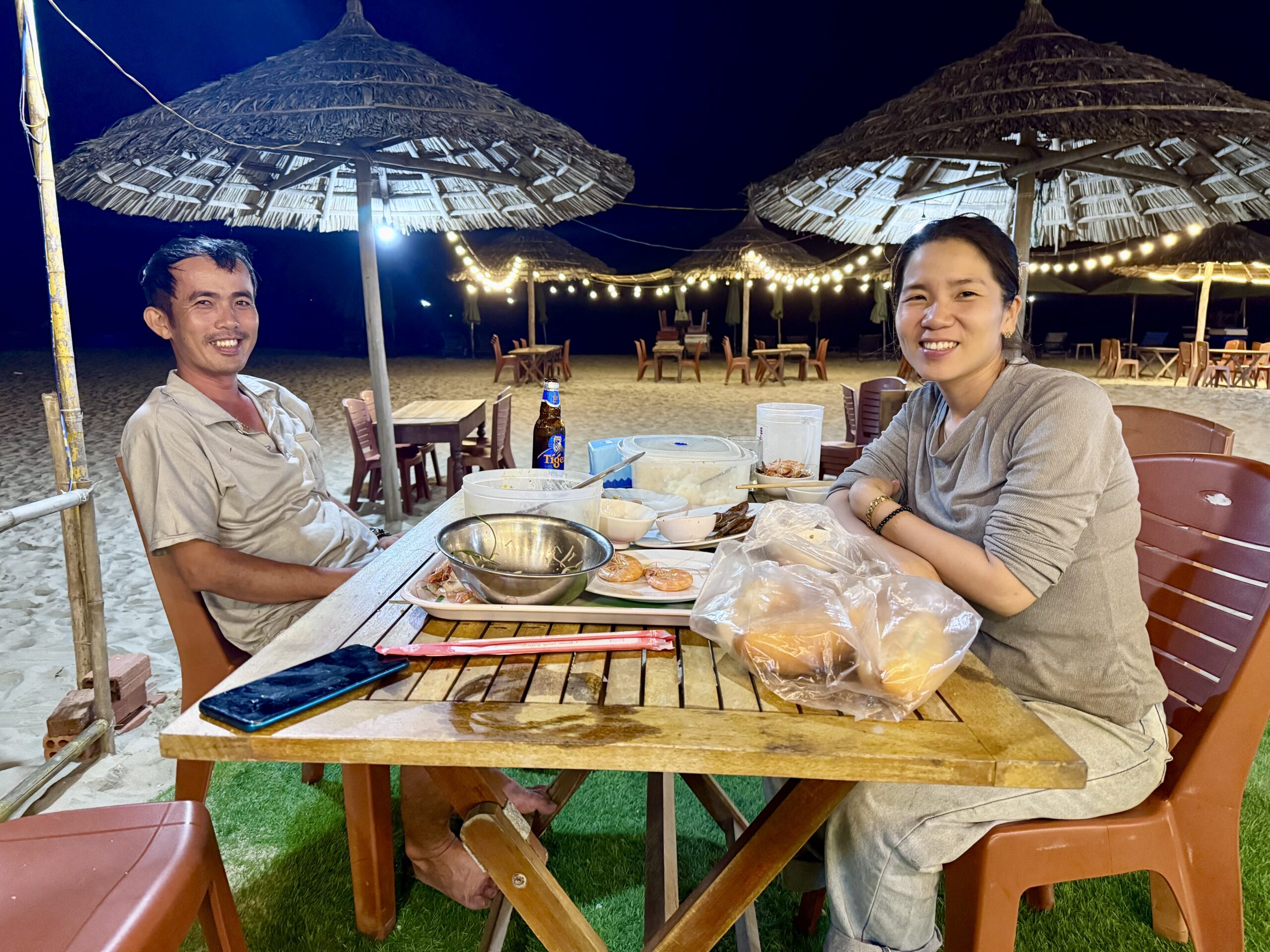 Men sejlturen var altså ganske fin med magisk lys i lanterner på vandet. Derefter gik jagten ind på et aftensmåltid, men igen – hold nu op, hvor var der mange mennesker!! Til sidst kiggede vi på hinanden, vente om og fandt en taxa. Så vi endte endnu engang på ‘vores’ restaurant på stranden og spiste deres fantastiske stegte fisk mm.