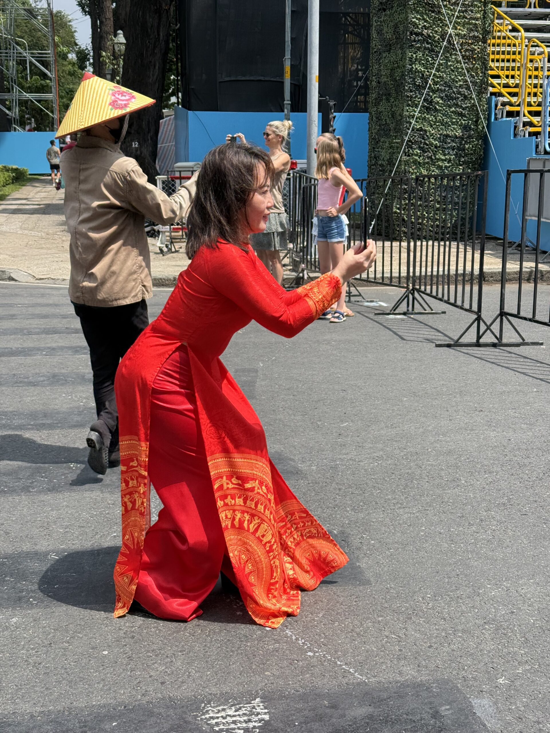 Allerede den første aften, da vi ankom, var der afspæringer af mange veje – også for gående. Der kom store grupper af soldater i forskellige uniformer marcherende gennem gaderne til stor jubel fra tilskuerne – dog mest teenagerpigerne 🥹 Det var sådan lidt rockmusiker-status, og de unge soldater nød det tydeligvis 😄Kvinderne er fint klædt på, og røde t-shirts med guldstjerne på maven og tilsvarende kasketter/hatte fylder også i gadebilledet.